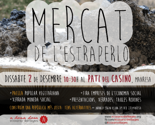 Com cada any per aquesta època, ens trobarem a l’ombra dels arbres del pati de la masia de La Plana, dins el municipi de Santa Maria d’Oló (Com arribar-hi?). L’Estraperlo és la darrera activitat dins les Jornades d’Estiu de La Plana. A més del mercat, a les 12:00 hi haurà un taller sobre primers auxilis a càrrec de Cristina Lliró, i a les 13:00 un concert de Hang (el cartell està equivocat). Per dinar tindrem la tradicional paella de verdures.
